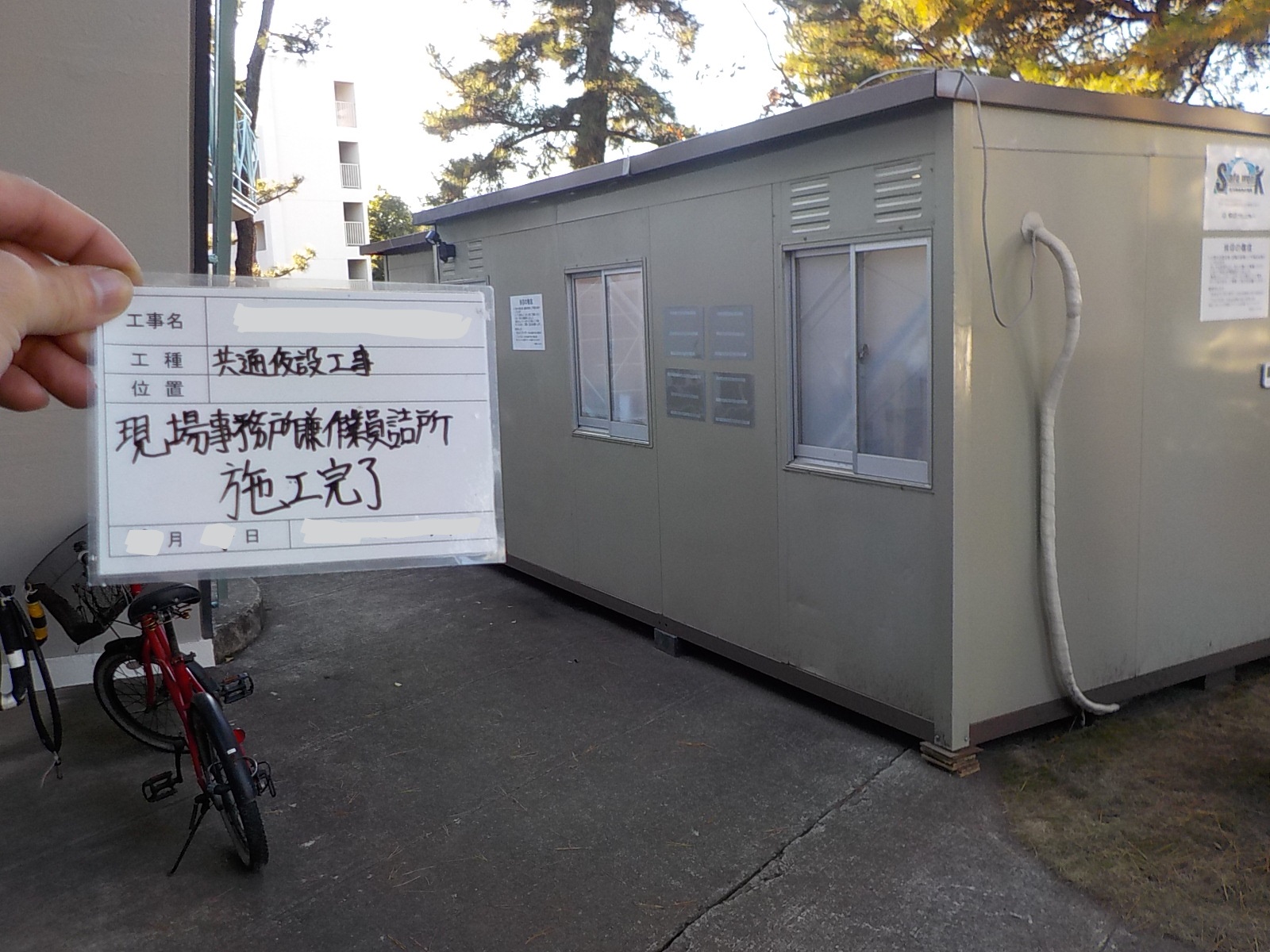 大規模修繕工事にあたり、ご住居様の公共の場をお借りして仮設事務所や仮設トイレを